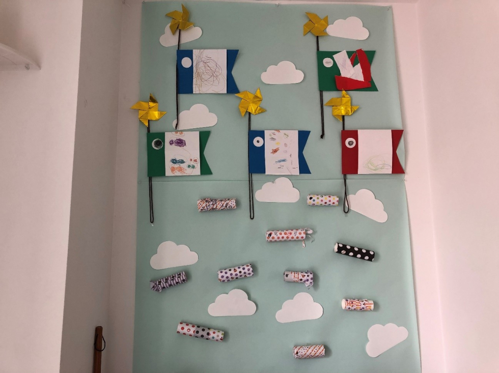 制作では季節の壁面制作や、手作りおもちゃなど、ちぎる、貼る、切る、折る、めくる、塗るなど手先の巧緻性を高める動きを取り入れながら作品を作り上げ、楽しく達成感のある活動を用意しております。