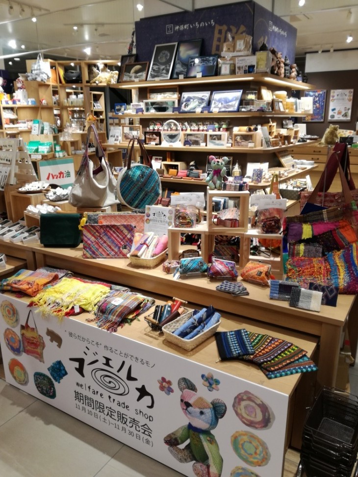 「マジェルカ」さんは、日本全国から集めた福祉作業所の雑貨を販売しています。また、障害がある方の就労支援の場として、日々の店舗運営も障害がある方々と一緒に行なっています。