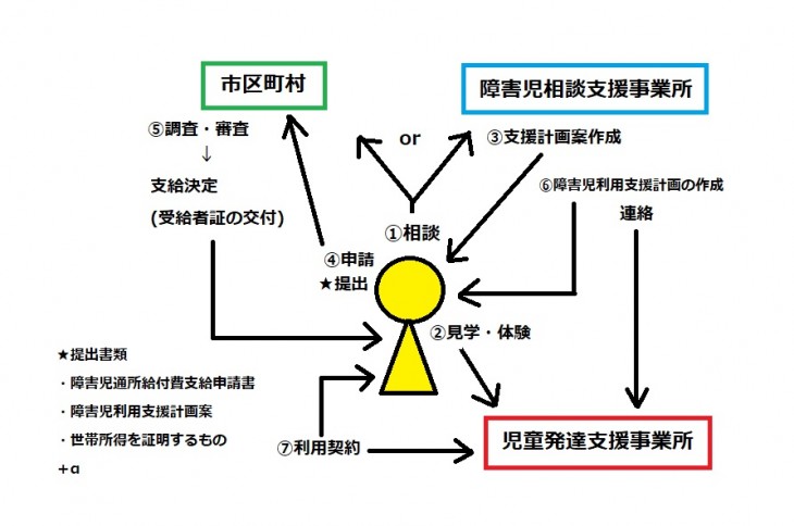 ①「市区町村の相談支援窓口」または「障害児相談支援事業所」に相談する