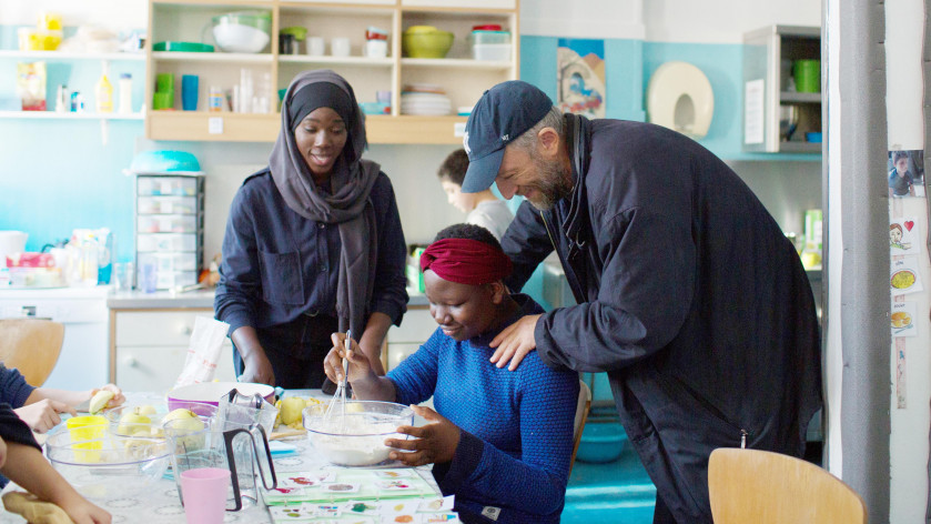 ブリュノはヴァランタンの介助を、マリク(レダ・カデフ演)に相談する。マリクが運営している社会からドロップアウトした若者の独立を支援する組織「寄港」は「正義の声」と協力関係にあり、いつもスタッフを派遣している。マリクは遅刻ばかりしてやる気のないディラン青年(ブライアン・ミアロンダマ演)をヴァランタンの介助に指名する。