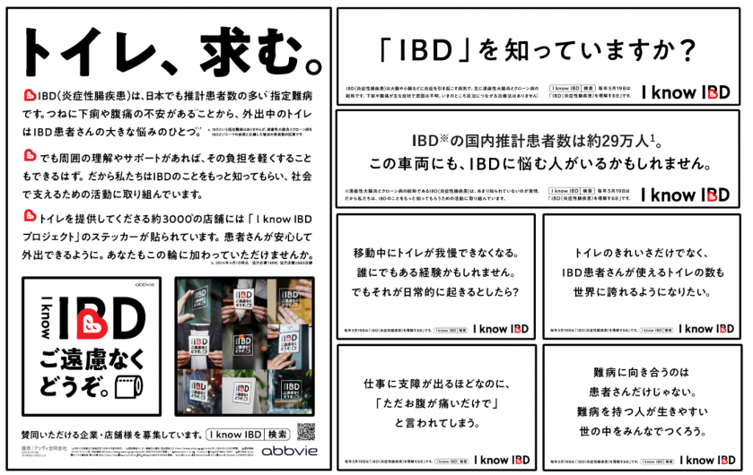 5月19日の「IBDを理解する日」を記念し、I know IBDプロジェクト「トレインジャック広告」が行われました。JR京浜東北線・根岸線で5月13日(月)~5月26日(日)に、東京メトロ東西線では5月16日(木)~5月31日(金)に、広告が車内掲出されました。