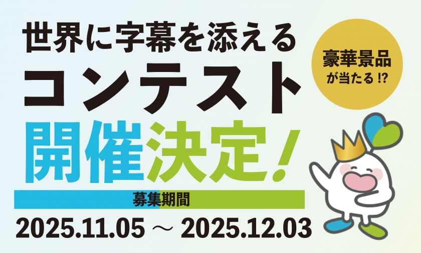 現在、「世界に字幕を添えるコンテスト」の応募を12月3日(水)まで受け付けています。字幕に関する好事例や、こう字幕を添えたいというアイデアや要望を幅広く募集しており、“字幕が当たり前にある社会”を共に広げていくことを目指します。
