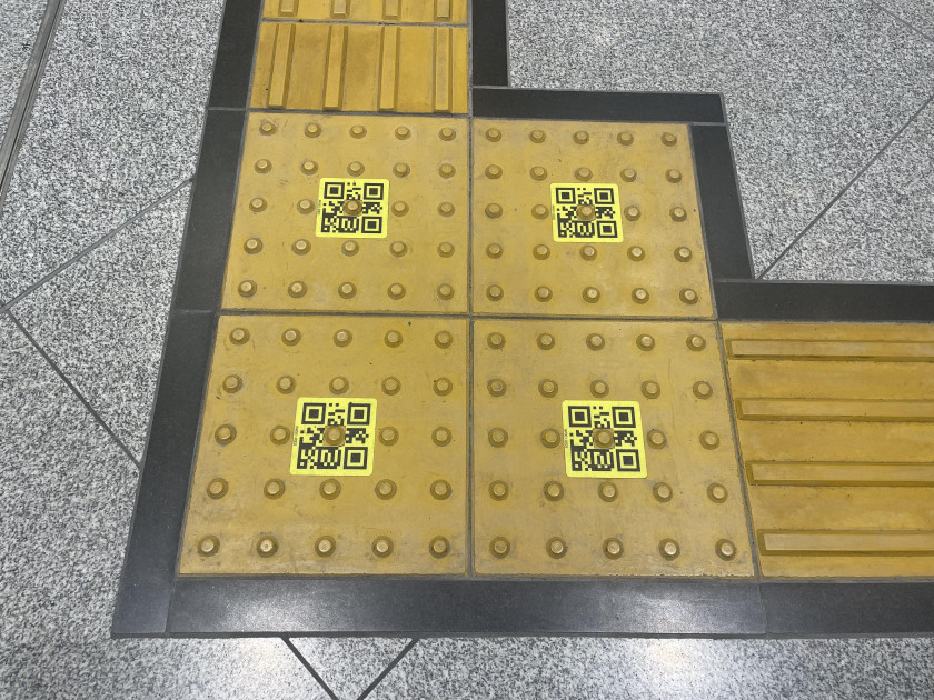 shikAIは、駅構内の点字ブロックにあるQRコードを専用アプリで読み込むことにより成り立つQRナビゲーションシステムです。現在地から目的地までの正確なルートを検出し、音声でナビゲートしてくれます。各QRコードは正確に紐づけられており、視覚障害者が迷うことなく出口へ向かうよう支援します。QRコードが見えない人でも、点字ブロックに沿ってスマホのカメラを下に向けて歩いていくと、自動的にQRコードを認識できるようになっています。