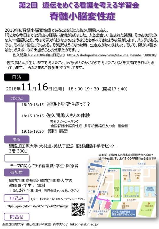 今度は東京都中央区にある聖路加国際大学の「遺伝をめぐる看護を考える学習会」で講演をした。