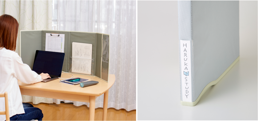 単なる仕切りだけでなく、A4用紙を収納できるポケット・計算ドリルなどを吊るせるクリップも付いており、作業をやりやすくしてくれます。また、普段は4つ折りで簡単に持ち運びできるほか、色も落ち着いたパステルカラーとなっており、気が散らないよう設計されています。