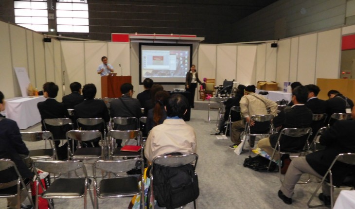 大阪市援助技術研究室のブースでの研究開発成果報告の様子