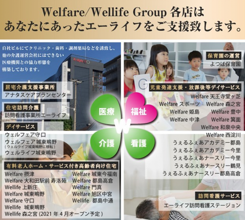 このサイト「障害者ドットコム」を運営している株式会社エースタイルは大阪府内で30以上の介護・医療・福祉施設を運営しています。