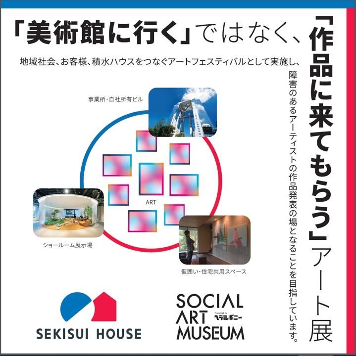 「積水ハウス地域のアート展」は、「『美術館に行く』ではなく『作品に来てもらう』アート展」をコンセプトにしており、才能ある障害者アーティストを発掘して地域の施設や建築現場などに作品発表の場を設ける取り組みです。