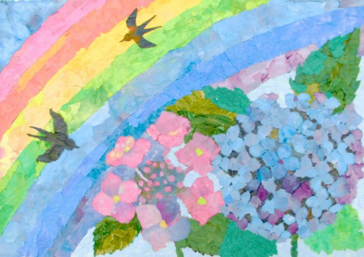 ルールはオリジナルであること、テーマや描写方法は自由です。水彩画やちぎり絵、切り絵、版画等、なんでもOKです。一人で作ってもグループで作ってもいいそうです。ちなみに、応募方法はかかりつけの病院で相談し、主治医から手続きをしてもらいます。応募期間、昨年はGW明けから7月末までだったそうです。今年はまだ未定だそうです。