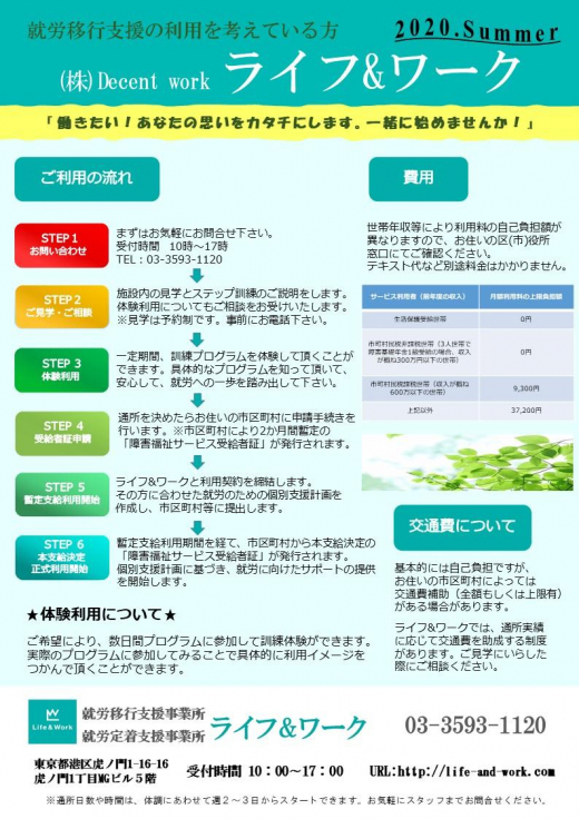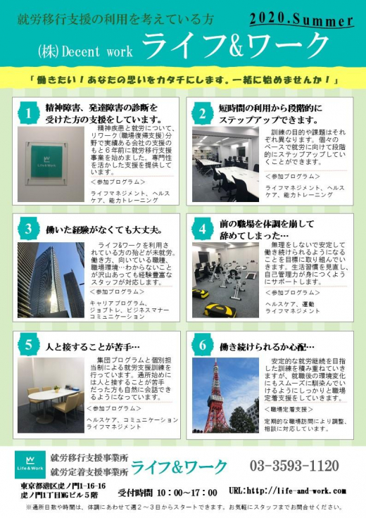 ライフ&ワークは、発達障害や精神障害の診断を受けた方への就労移行と定着支援施設です。