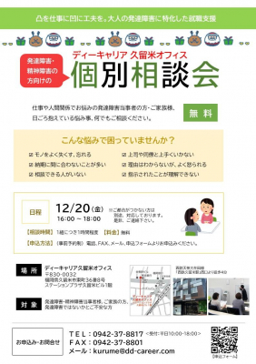 大人の発達障害に特化した就職支援、ディーキャリア 久留米オフィスは、西鉄天神大牟田線「西鉄久留米駅」西口より徒歩4分の場所にあります。