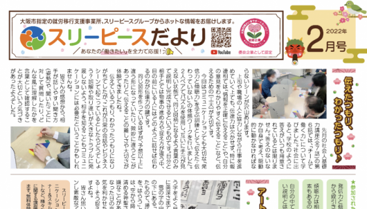 | サービス等を提供する地域 | 大阪府下全域のほか、京都、奈良、和歌山からもスリーピースを選ばれ通所されています。 |