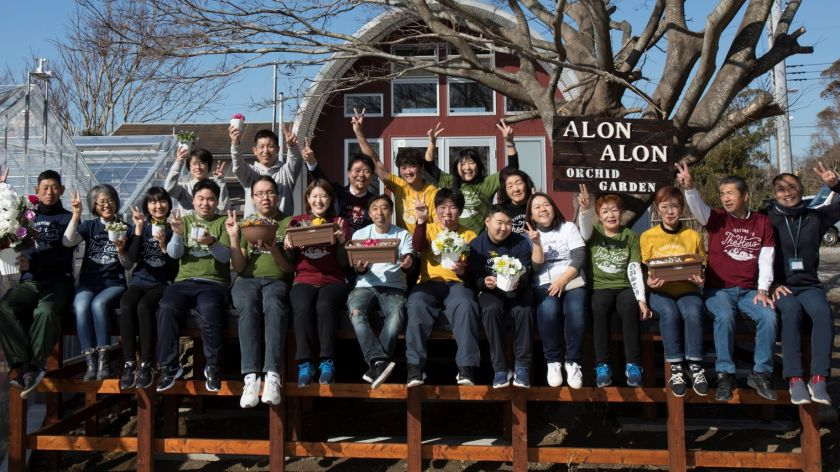 AlonAlonオーキッドガーデンに1年以上通った利用者の就労率は50%、実績として帝人、イオン銀行、ベルシステム24など慶弔花を沢山使う企業へ就労し定着率は100%、全員が毎日楽しく働き経済的自立を果たしております。